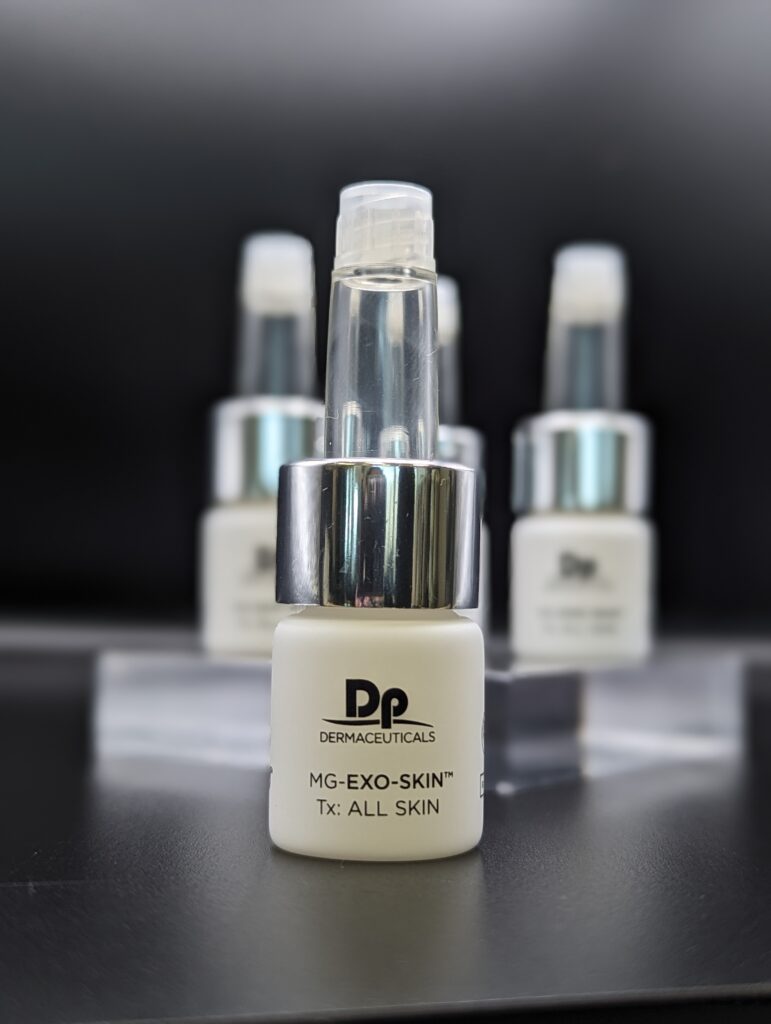 Exosomes are nanoparticles or microscopic vesicles naturally secreted by cells and they play a crucial role in intercellular communication and tissue regeneration. They are composed of proteins, lipids, amino acids, peptides, and growth factors. When combined with microneedling treatments, exosomes penetrate more deeply into the skin through the tiny channels created by the microneedling device.